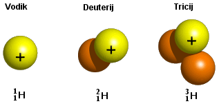 Primjer izotopa vodika sa nijednim, jednim i dva neutrona: