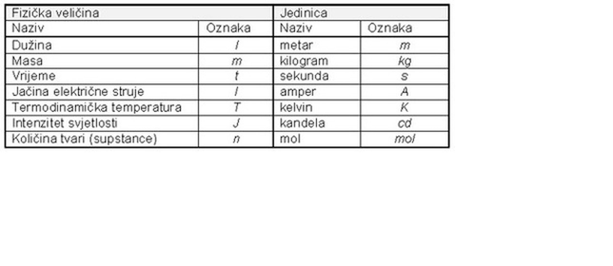 7 osnovnih fizičkih veličina, njihove oznake i jedinice su: