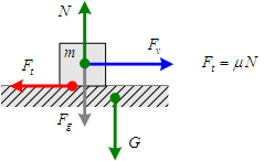 Da bismo pomoću gornje formule izračunali vučnu silu potrebno je prvo odrediti silu trenja. Prema definiciji intenzitet sile trenja jednak je: