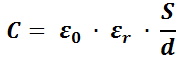 Kapacitet pločastog kondenzatora određen je izrazom: