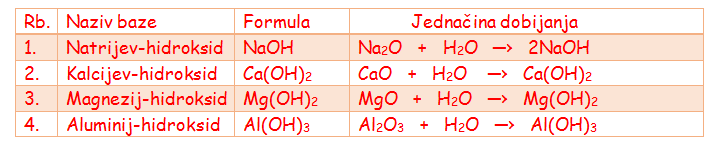 Najpoznatije baze i njihovo dobijanje prikazujemo u tabeli: